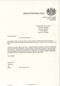 Since the outbreak of the coronavirus pandemic, courts have had to take emergency measures to adjourn cases during the various stages of the lock down. A new law has been introduced, Section 137ZB of the Criminal Procedure (Scotland) Act 1995, allowing courts to adjourn cases until the courts can re-open and deal with the cases safely and properly.